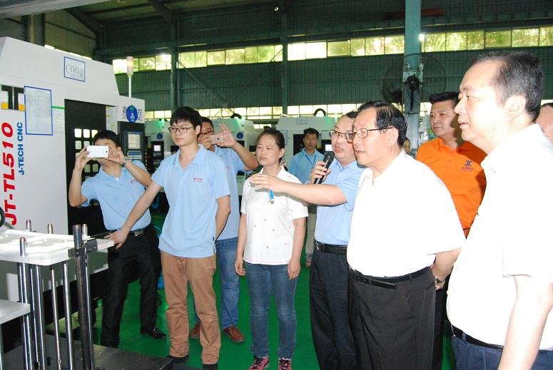 萬鋼部長、周濟院長等領(lǐng)導(dǎo)專家聽取蘇亞帥董事長關(guān)于高速鉆攻機JT-TL510A的成果匯報
