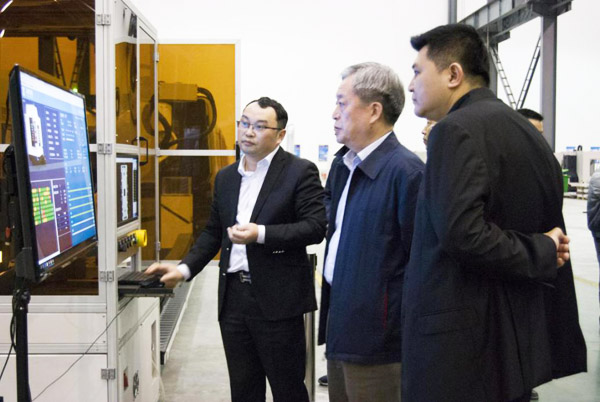 科技部黨組成員郭向遠(yuǎn)仔細(xì)詢問(wèn)嘉泰數(shù)控關(guān)節(jié)機(jī)器人、智能在線檢測(cè)以及數(shù)字化工廠的細(xì)節(jié)