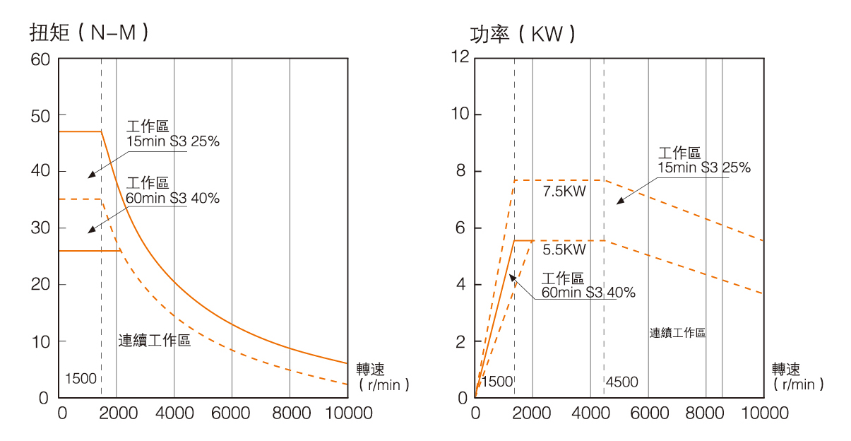 標(biāo)配FANUC 10000rpm主軸電機(jī)功率扭矩圖
