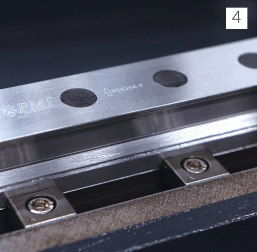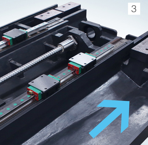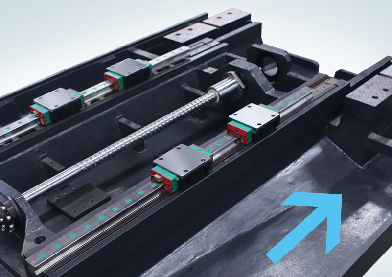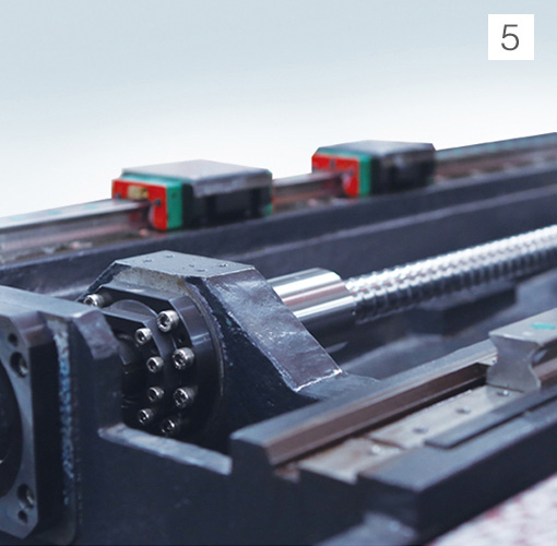 3、傳動(dòng)部件:三軸皆使用精密級絲桿,并予以適當(dāng)?shù)念A(yù)壓,尾端采預(yù)拉設(shè)計(jì),配合高精密級低阻力線軌,確保高速、高精度加工要求。